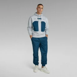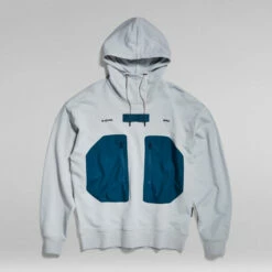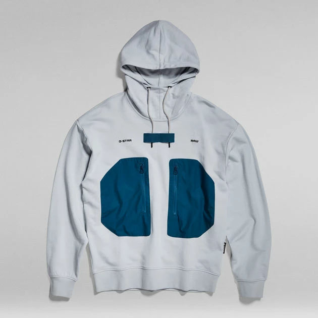 Hoodie Pocket is designed in a straight fit and offers contrast colored front pockets with a side zipper. The drawcord added to the hood can be stored underneath the woven tape. Ribbed edges complete this hooded sweater.