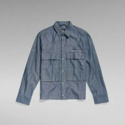 This shirt is created out of a finely woven chambray fabric, offering a characteristic color blend of blue and white.