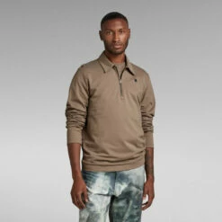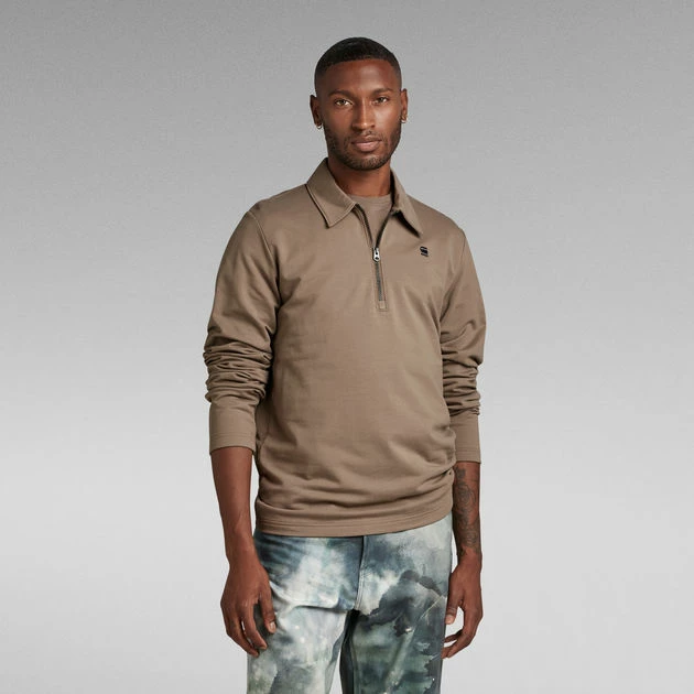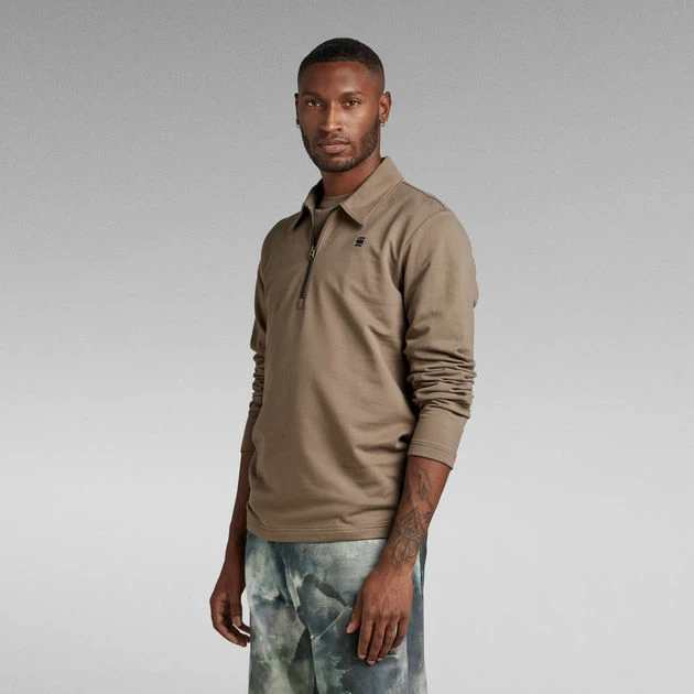 Lightweight sweater Polo Half Zip is designed in a straight fit and offers a shirt collar with a short zip. The embroidered G-Star RAW logo at the chest completes this long sleeved top.