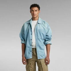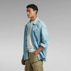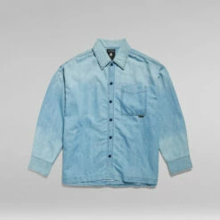 Premium shirt Boxy Fit is designed in a loose, oversized fit with a roomy back panel. The pleats caught underneath the shoulder panel add to it. This shirt offers a button closure in a contrast color. A single patch pocket is set at the chest to complete this denim shirt.
