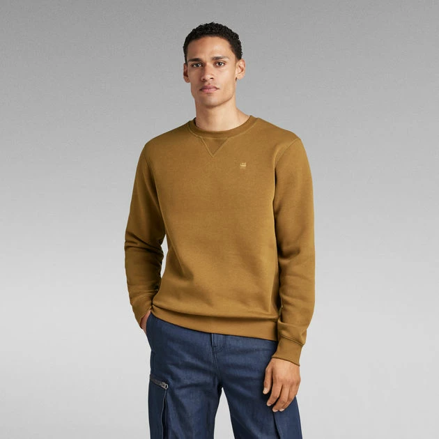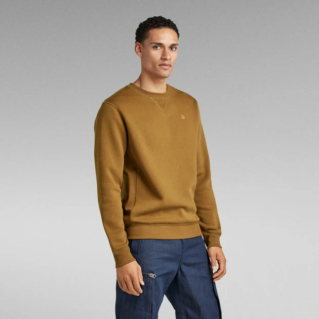 The Premium Core sweater is executed in a straight fit with a rounded neckline and a triangle inset piece. Also the side panels, cuffs and waist are created out of a ribbed knit. The long sleeves are cut rounded at the wrist, showing a higher cuff. A subtle branding is added to the chest and at the side seam.