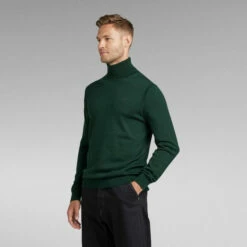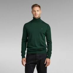 Knitted sweater Premium Core Turtle is designed in a straight fit and offers a turtleneck. Long sleeves are created with a ribbed cuff. The G-Star RAW embroidery at the chest signs it off.