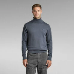 Knitted sweater Premium Core Turtle is designed in a straight fit and offers a turtleneck. Long sleeves are created with a ribbed cuff. The G-Star RAW patch at the chest signs it off.