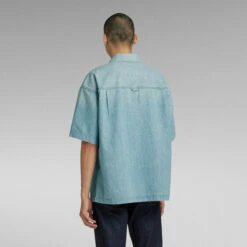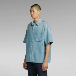 Oversized shirt Boxy Fit is designed in a loose fit with a roomy back panel. The pleats caught underneath the shoulder panel add to it. This premium short sleeved shirt offers a button closure. A single patch pocket is set at the chest to completes it.
