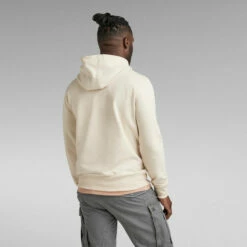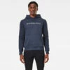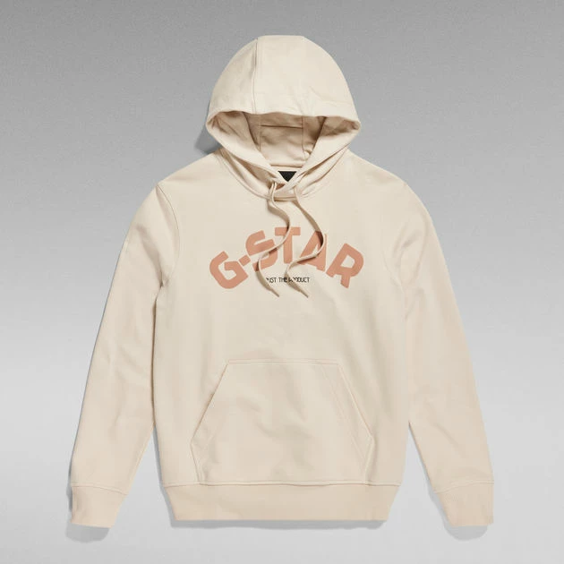 Hooded sweater Puff Logo is designed in a straight fit. A kangaroo pocket is added to the front. The hood shows a cross over front with woven drawstrings. The 3D graphic print at the chest completes this G-Star RAW hoodie.