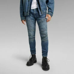 These Rackam 3D skinny jeans are designed with shaped seams at the thigh and knee. Zip pockets are caught behind a welt at the upper leg and thigh. These zip placements are inspired by a flight suit. The 3D fit combined with a stretch denim create a comfortable wear. These jeans offer a zipper closure.