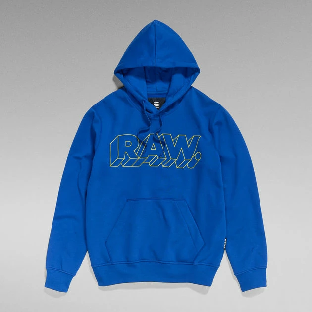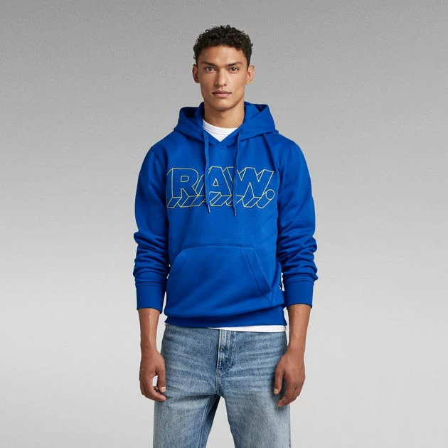 Hooded sweater RAW 3D is designed in a straight fit and features a kangaroo pocket. The lined hood offers a cross over front with a drawstring. The sleeves and waist are finished with a ribbed edge. A 3D RAW graphic at the chest completes this hoodie.