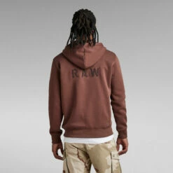 Hooded sweater RAW Embro is designed in a straight fit. A kangaroo pocket is added to the front. The hood shows a cross over front with woven drawstrings. The embroidered RAW graphic at the back completes this hoodie.
