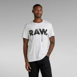T-shirt RAW Splatter is one of the graphic T-shirts we’ve developed. This version is cut in a straight fit and features a graphic print at the chest.