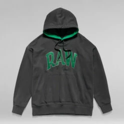 Hooded sweater RAW University features a felt application at the chest. An embroidered edge fixates it. The roomy hood adds to the comfy oversized fit. Ribbed finished edges complete this oversized hoodie.