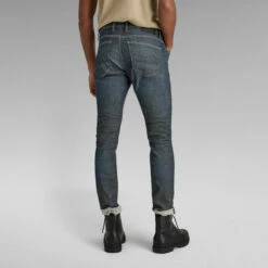 These Revend jeans are executed in a skinny fit. The curved stitch lines at the back pockets are reinforced with leather.