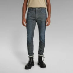 This darker shade of indigo denim is finished with subtle fades and worn in details.