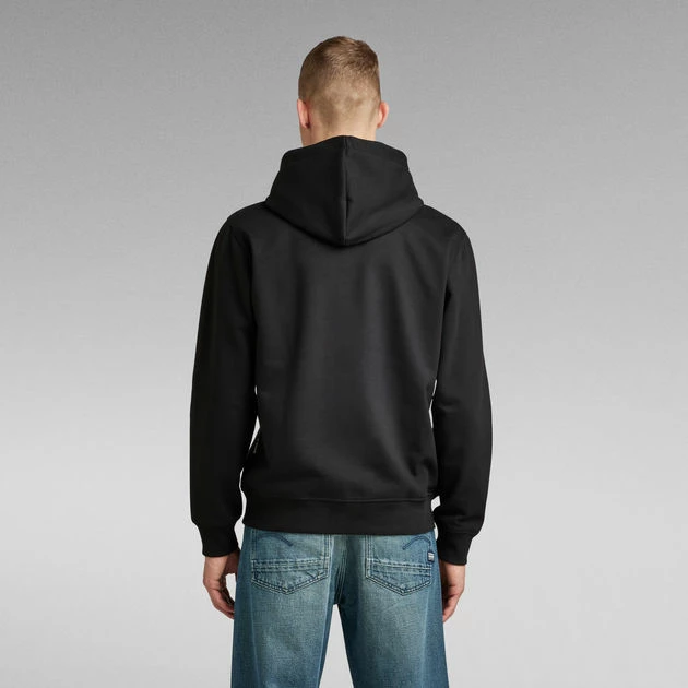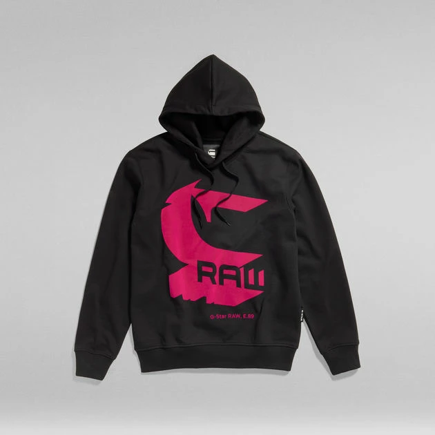 Hooded sweater Shadow Drop Graphic is designed in a straight fit and features a graphic print at the front. The flock print adds a soft touch. This hoodie shows a comfortable hood with a cross over front and drawstrings. The ribbed finished cuffs and waist complete this G-Star Graphic hoodie.
