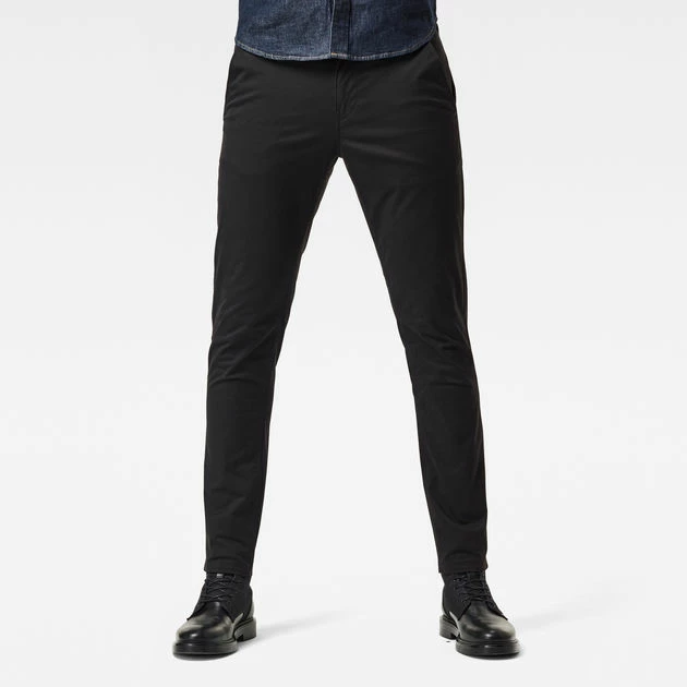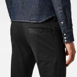 Vertical seams at the back side create a slim fit silhouette. The Slim chino offers inset pockets with a G-Star RAW signed coin pocket. One button closed welt pocket is added to the back side.