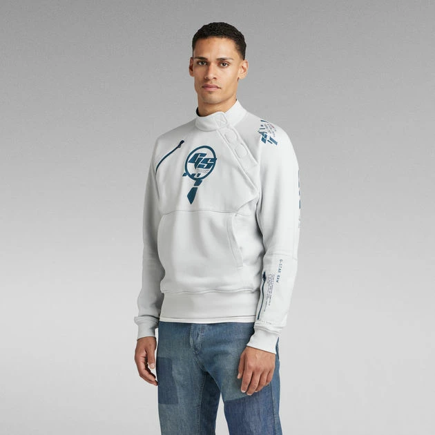 Sweater Sobiru Anorak is designed in a loose fit and offers a diagonal front closure with Velcro patches. Zip pockets are added to the chest and lower sleeve. A kangaroo pocket adds to a comfortable wear, while the graphic prints at the front and back add character.