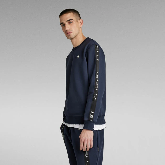 Crew neck sweater Sport A Tape is designed in a straight fit and offers a woven G-Star RAW tape at the sleeves. Ribbed cuffs and waist add to a comfortable wear. A subtle chest print signs it off.