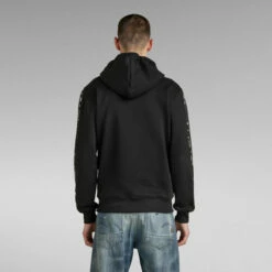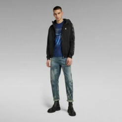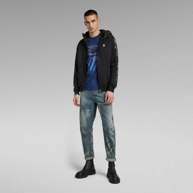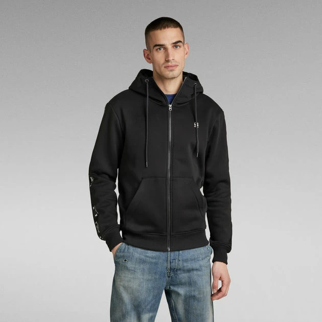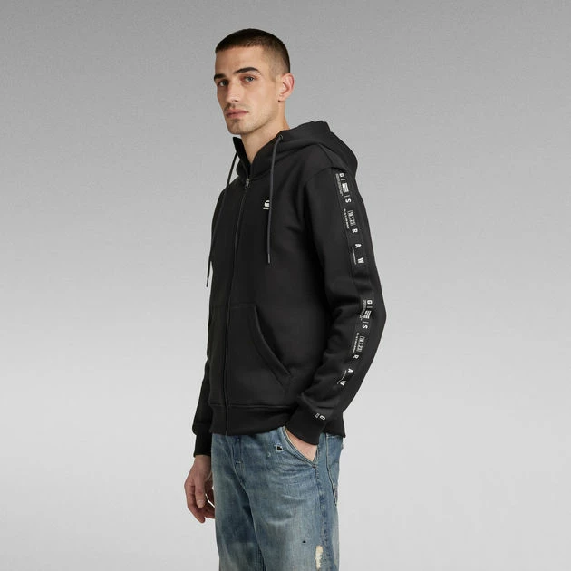 Zip through sweater Sport A Tape is designed in a straight fit. This sweater jacket offers a split kangaroo pocket. Along both sleeves, a woven G-Star RAW tape is applied. The ribbed cuffs and waist add to a comfortable wear.