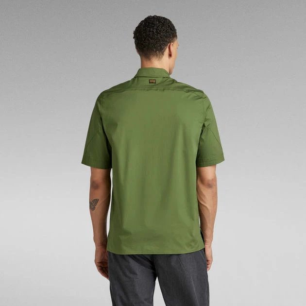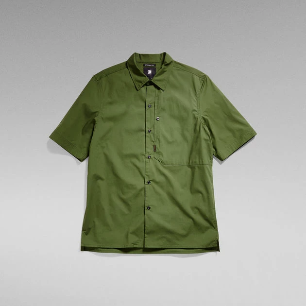 A patch pocket with a side entry is set alongside the front button closure. This Stalt Service shirt offers a straight fit and is cut with short sleeves and a straight hem designed with short side slits. The open collar offers a small loop at the side to create a closed version.