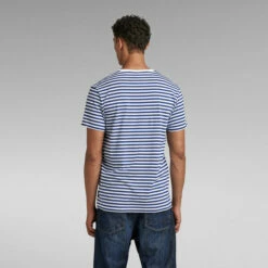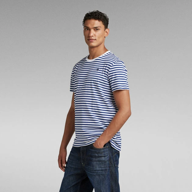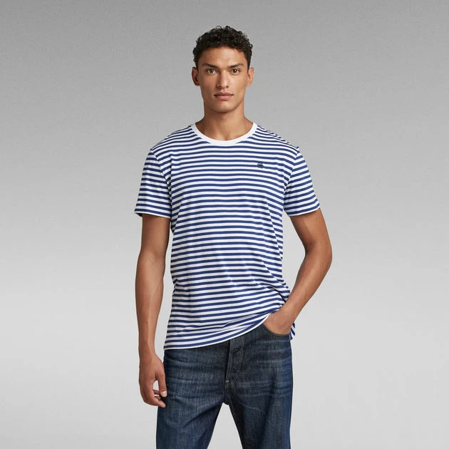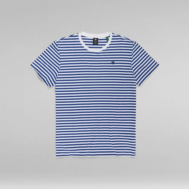 This organic cotton tee offers a straight fit. The horizontal stripe repeat is created by yarn dye. The ribbed neckline adds to a comfortable fit.