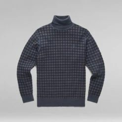 Knitted Turtleneck sweater Table is designed in a straight fit and offers a solid piece with lots of texture. The high and lows created by the knitted lines, make a check pattern. The fine knitted turtleneck completes it.