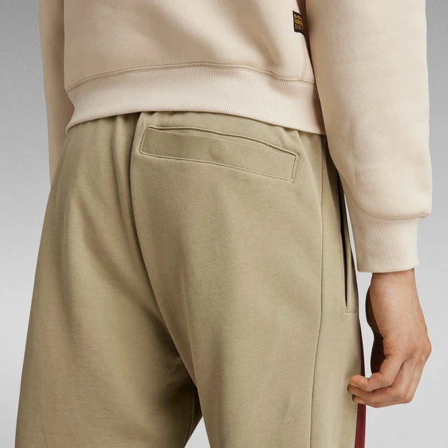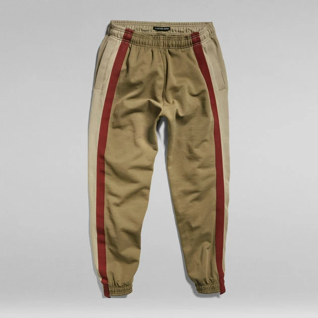 Sweat pants Tape Colorblock are designed in a loose fit and offer elastic finished cuffs and waist. Woven tapes add detail to the sides. Welt pockets are added to the front as well as the back, offering a hidden snap closure. A graphic print at the back leg makes it complete.
