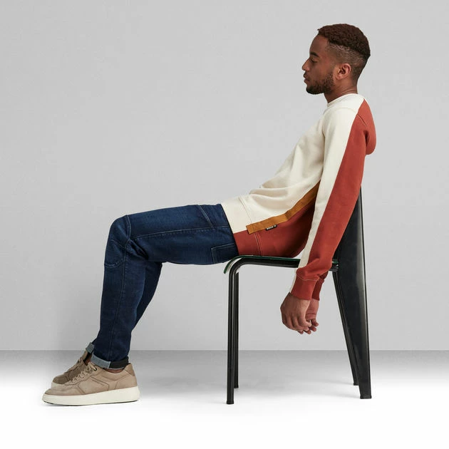 Sweater Tape Colorblock is designed in a straight fit and offers a contrast colored back panel. Woven tapes create loops at the back. The side seams are reinforced with woven tapes as well. Graphics at the chest complete it.