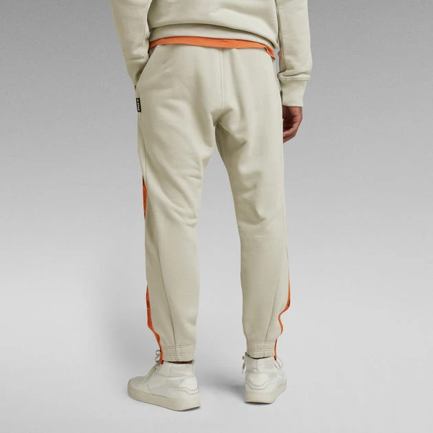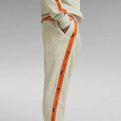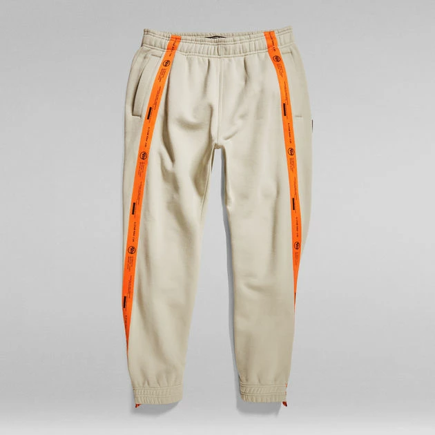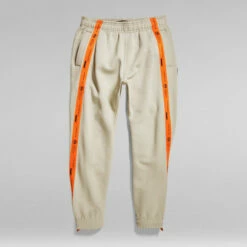 Sweat pants Tape are designed in a loose fit and offer elastic finished cuffs and waist. Woven tape adds detail to the sides. At the front, welt pockets are set. Also at the backside a pocket is created. This one offers a hidden snap closure. The drawcord at the inside waist allows for a tighter fit when preferred.