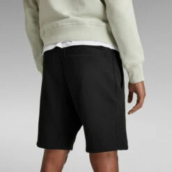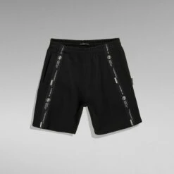 Sweat shorts Tape are designed in a loose fit and offer an elastic waist. Woven tapes add detail to the front, where welt pockets are set aside. Also at the back a welt pocket is created. This one has a hidden snap closure. The drawcord at the inside waist allows for a tighter fit when preferred.