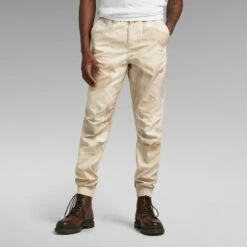 Woven trainer RCT is designed in a roomy fit with a relaxed cuff. The looser fitting cuffs as well as the pleats around the knee enhance a comfortable fit. This trainer pant shows inset pockets and a single back pocket. A flap and hidden snap button finish it. The stretchable waistband with the additional drawcord allows for a personalized fit.