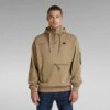 Hooded sweater Triple RAW is designed in a straight fit and features a graphic print at the chest. The comfortable hood offers a cross over front with a drawstring. The sleeves and waist are finished with a ribbed edge. A roomy kangaroo pocket completes this G-Star hoodie.