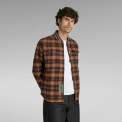 Overshirt Bomber Collar combines a regular shirt with a ribbed neckline we know from bomber jackets. Cut in a straight fit this design offers flap pockets at the chest with a hidden button closure and side seam pockets. At the back, two slanted pieces create shoulder panels with an enhanced fit. The back side is slightly extended and offers a curved hem.