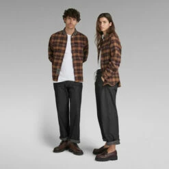 Woven check pattern, inspired by a vintage woolen overshirt. This woven twill is created out of recycled materials.