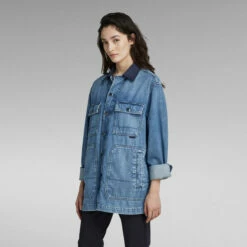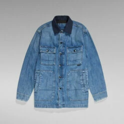 The design of this Chore Evergreen jacket features flap pockets at the chest. Sturdy shank buttons ensure a firm closure. At the waist of this unisex denim jacket, patched pockets are created with a broad welt entrance. The sleeves offer a slit and two buttons to determine the width you’d like.