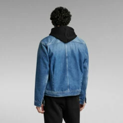 Jacket Flight Combat offers a shank button closure. The sleeves have a slit and a concealed snap button closure. This unisex denim jacket shows chest pockets with a flap and single welt pockets at the waist. At the back, volume is created through the pleats caught at the waistband. Unisex sizing runs as men’s sizing.