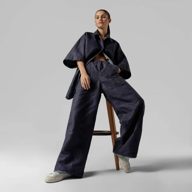Trainer Reversible Loose is designed in our G-Star RAW Research lab. Created in a double layer, these unisex trainer pants offer an elasticated waist with an integrated drawcord and key loop. Both inside and out pockets are created. At the front as well as the backside. The leg length is extended. Either wear it as is with a wrinkled effect around the ankles or choose for a turn-up to create a regular length. The length of the inner piece is slightly longer to create a color pop effect at the hem. The graphic prints at the front and back add character.