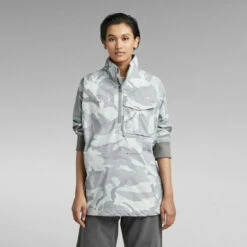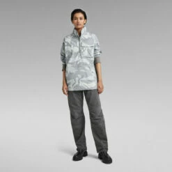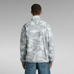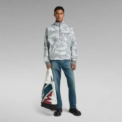 Overshirt Half Zip is designed in a straight fit. A raised collar is finished with a short zipper. This overshirt jacket shows long sleeves. The cuffs can be opened by the concealed snap button closure. Pockets are set at the side seams as well as the chest, where a 3D flap pocket is placed. The concealed hidden snap adds a solid closure. Pull the cords that are placed within the waistband to allow for a tighter fit. The graphic prints add detail.