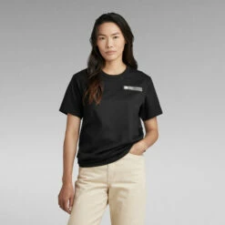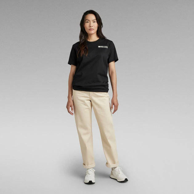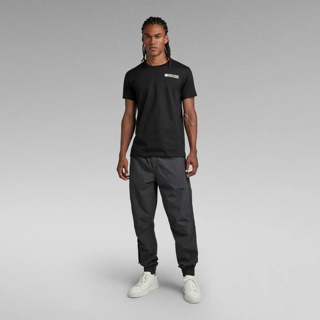 T-Shirt Premium Core 2.0 offers a ribbed neckline and a straight fit. The woven tape applied to the chest shows a graphic print.