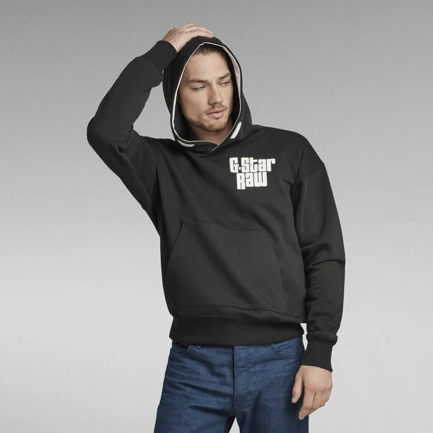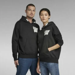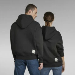 This unisex hooded sweater is designed for those of you that love the transition to more oversized fits. The hood offers an integrated tape to allow for a tighter fit. This unisex hoodie shows long sleeves with a ribbed finish alike the waist and a roomy kangaroo pocket. The graphic prints at the chest and lower back are inspired by the late 80’s West coast hip hop scene.