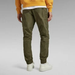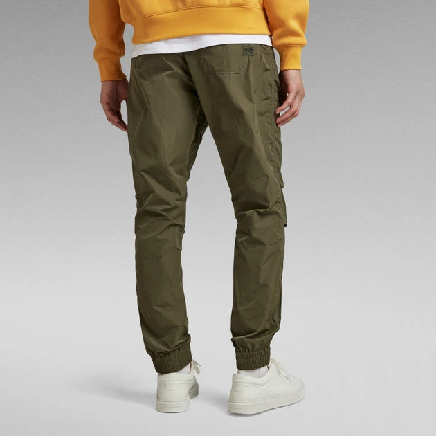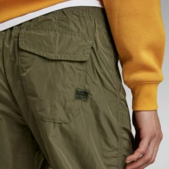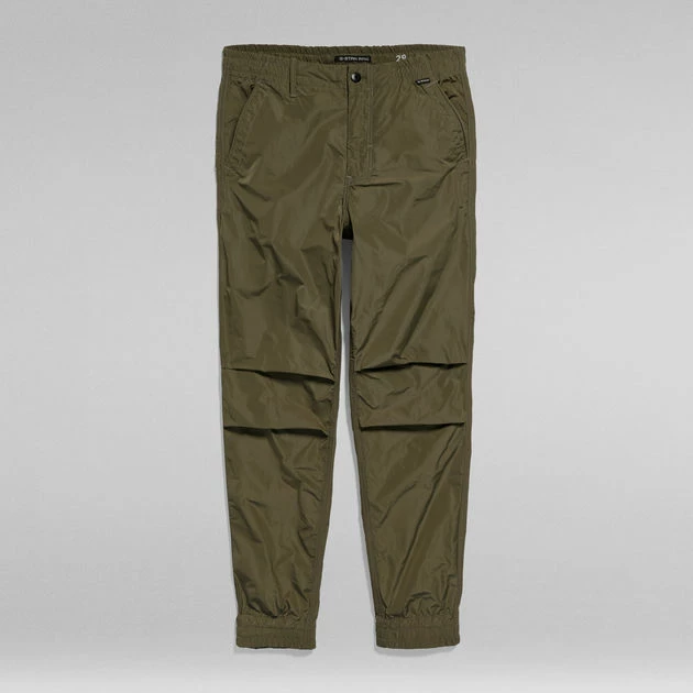 Woven trainer RCT is designed in a roomy fit with a relaxed cuff. The looser fitting cuffs as well as the pleats around the knee enhance a comfortable fit. This unisex trainer pant shows inset pockets and a single back pocket. A flap and hidden snap button finish it. The stretchable waistband with the additional drawcord allows for a personalized fit.