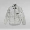 This lined Utility jacket offers a light padding and a soft touch collar. Deep flap pockets have additional side entry pockets underneath. The hidden snap buttons ensure a firm closure. Volume is created at the back by the folded pleats that are caught in the waistband. Shoulder loops with a ‘strike through’ stitch create even more detail to this unisex denim jacket.