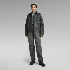 A deep grey denim shade, finished with a wax look that remains its soft handfeel.