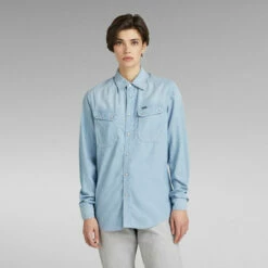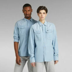 This unisex shirt is designed in a slim fit. The shaped seams at the back enhance this silhouette. This G-Star shirt offers chest pockets with an angled flap. Pearlescent snap buttons are used to close this style. Unisex sizing runs as men’s sizing.