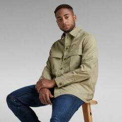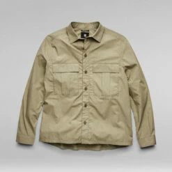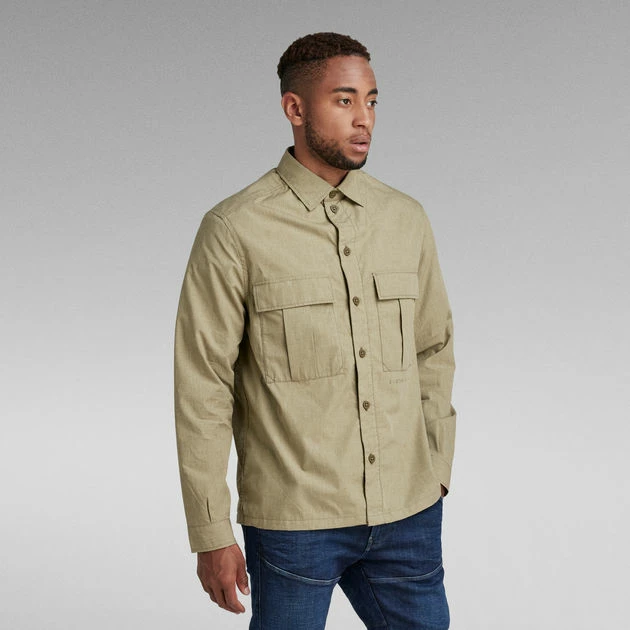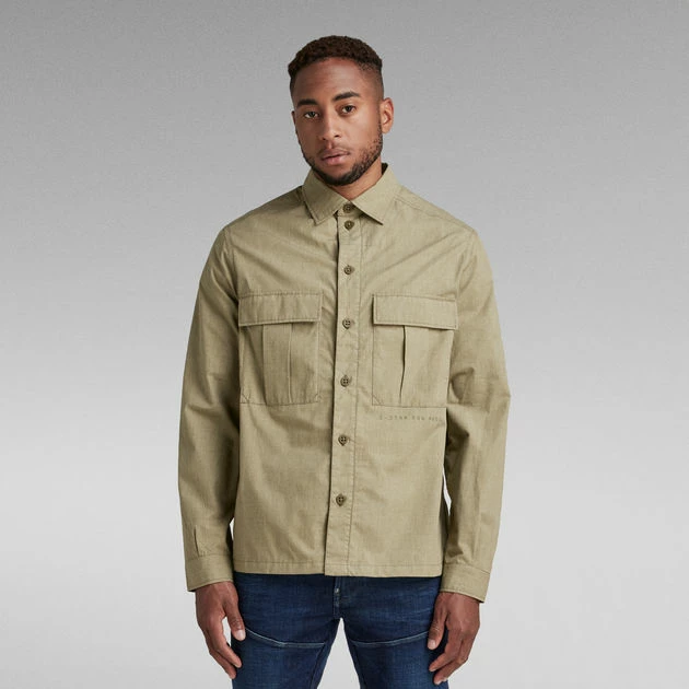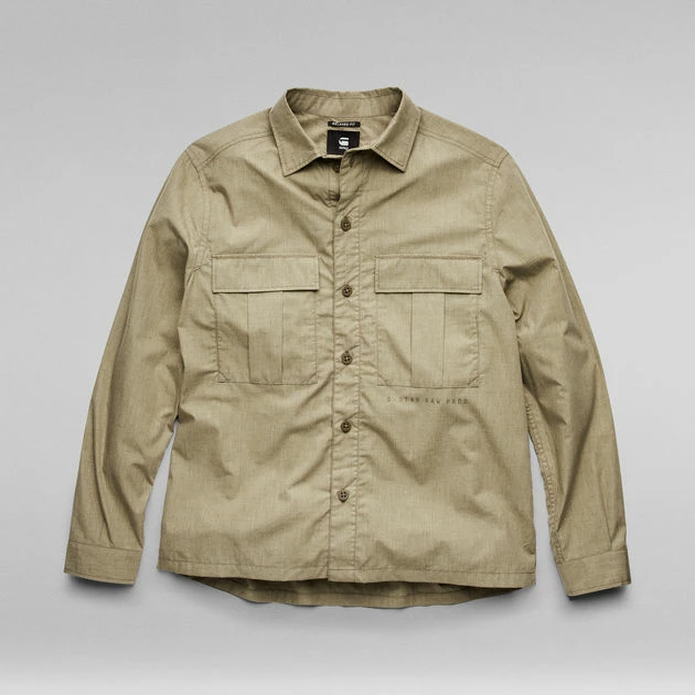 Shirt Utility Relaxed is cut in a straight fit. Cargo pockets are added to the chest and offer a hidden snap closure. A graphic print is set just below. The double button at the cuff allow for a tighter fit when preferred. This shirt offers a button closure. The pleats add the back add to a comfortable wear.
