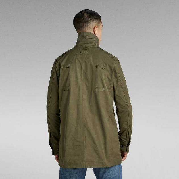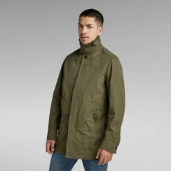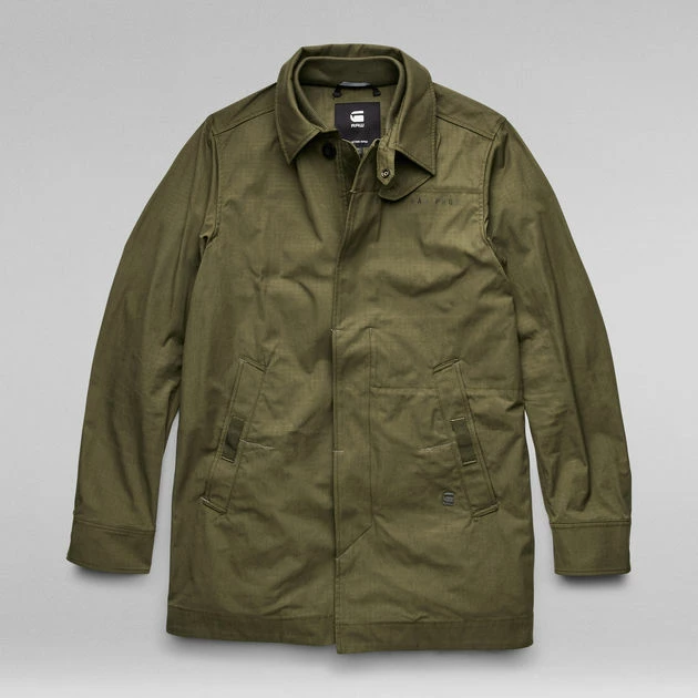 Trench Utility is designed in a straight fit, offering a double collar design. The inner rib collar adds warmth to this style. Use the throat latch when a raised collar is preferred. Utility inspired loops are set at the upper back and the front offers waist pockets with a broad welt and snap closures. An inner pocket and hanger loop are added for ease.