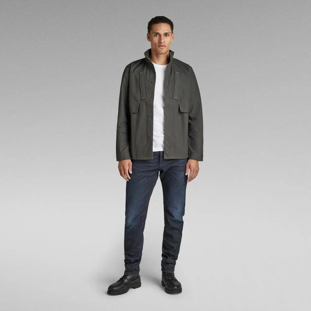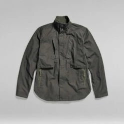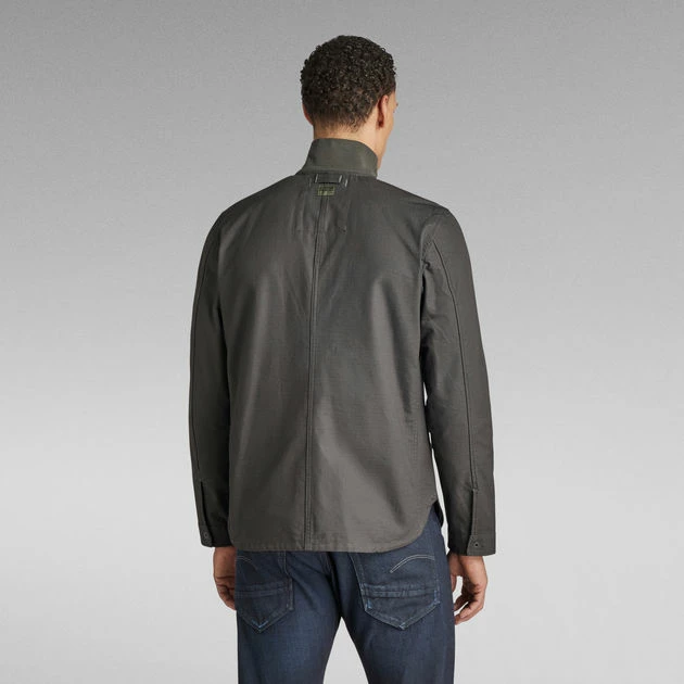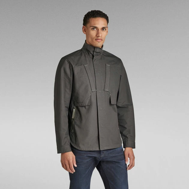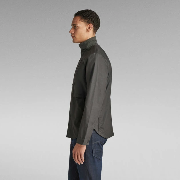 The design of overshirt Utility Zip features shaped pockets at the chest. Zipper pockets are added to the side seams. This overshirt offers a hidden snap button closure. A hanger loop is added for ease.