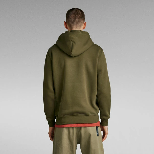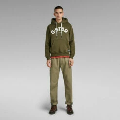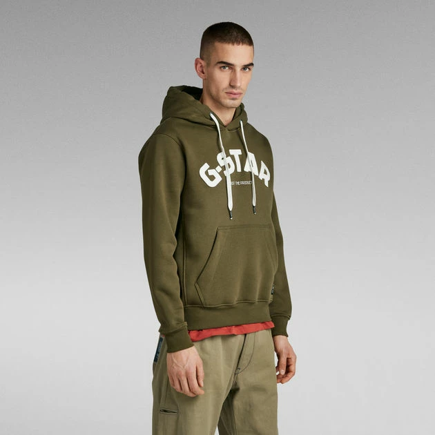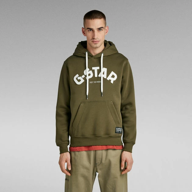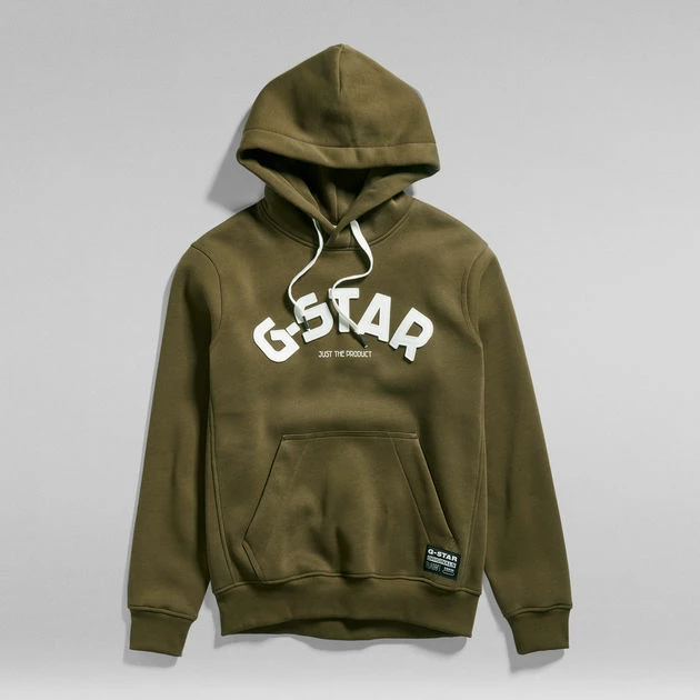 Hooded sweater Varsity Felt features a lined hood with a cross over front and drawstrings. A G-Star RAW felt application at the chest is combined with a kangaroo pocket below. Ribbed cuffs and waist add to a comfortable wear.