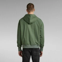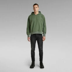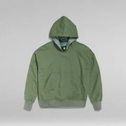 Hooded sweater Woven is fully lined and offers a kangaroo pocket. The stitch down partly divides the kangaroo pocket in two compartments, whereas the ribbed edges create a comfortable finish to this hoodie.