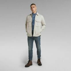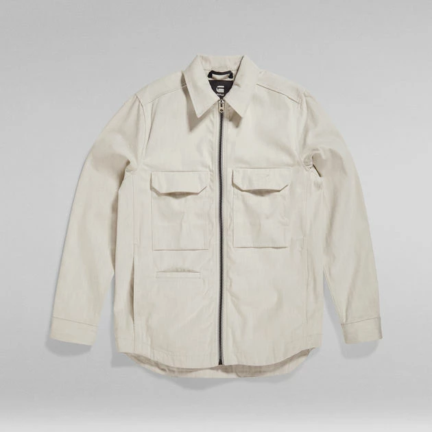 The design of this Zip overshirt features flap pockets at the chest. Hidden snaps ensure a firm closure. At the waist, a single welt pocket is set at one side. Even at the side seams, pockets are created. This overshirt offers a front zipper. A hanger loop is added for ease.