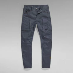 These skinny Cargo Pants offer 3D patched on pockets with a concealed zipper along the side. Woven tape is applied at the entrance of the inset pockets. Also at the backside pockets are created. These show a flap and button closure. Diagonal seams below give additional shaping to the backside.